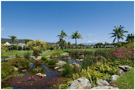 The outlook from this residence is superb taking in a meandering water course, manicured grounds, and a golf hole bordered by tropical gardens.