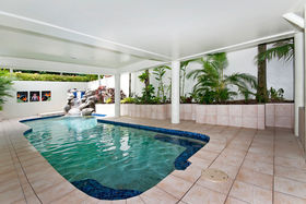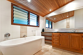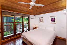 Downstairs you will enjoy the large, open entertaining and living area, the kitchenette and bar area, two more guest rooms, the laundry and access to the inviting solar heated swimming pool and deck that surrounds the home. The owners have also recently completed a sumptuous timber entertaining deck that is nestled within the tropical gardens providing a great spot for garden parties, a good book or simply relaxing.