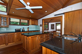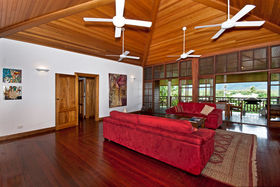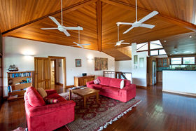 The brief was to capture the coastal breezes & harness the magnificent views over the mountain ranges and still maintain a Coral Sea aspect. Blending the right mix of tropical timbers with solid concrete construction completed the home... timbers included flooring made from mixed rainforest hardwood. The solid timber doors, door frames and cupboards were handcrafted by a Swiss cabinet maker from pepper wood, with ceilings from tulip oak and external walls clad in silky oak.